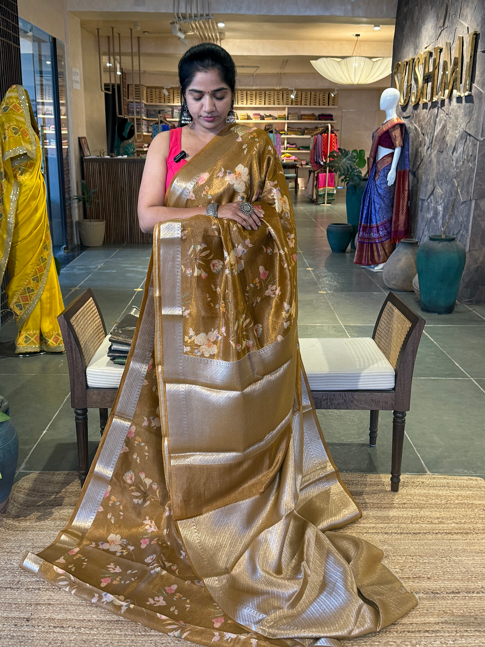 Metallic Tone Banarasi Cotton Tissue Printed Saree