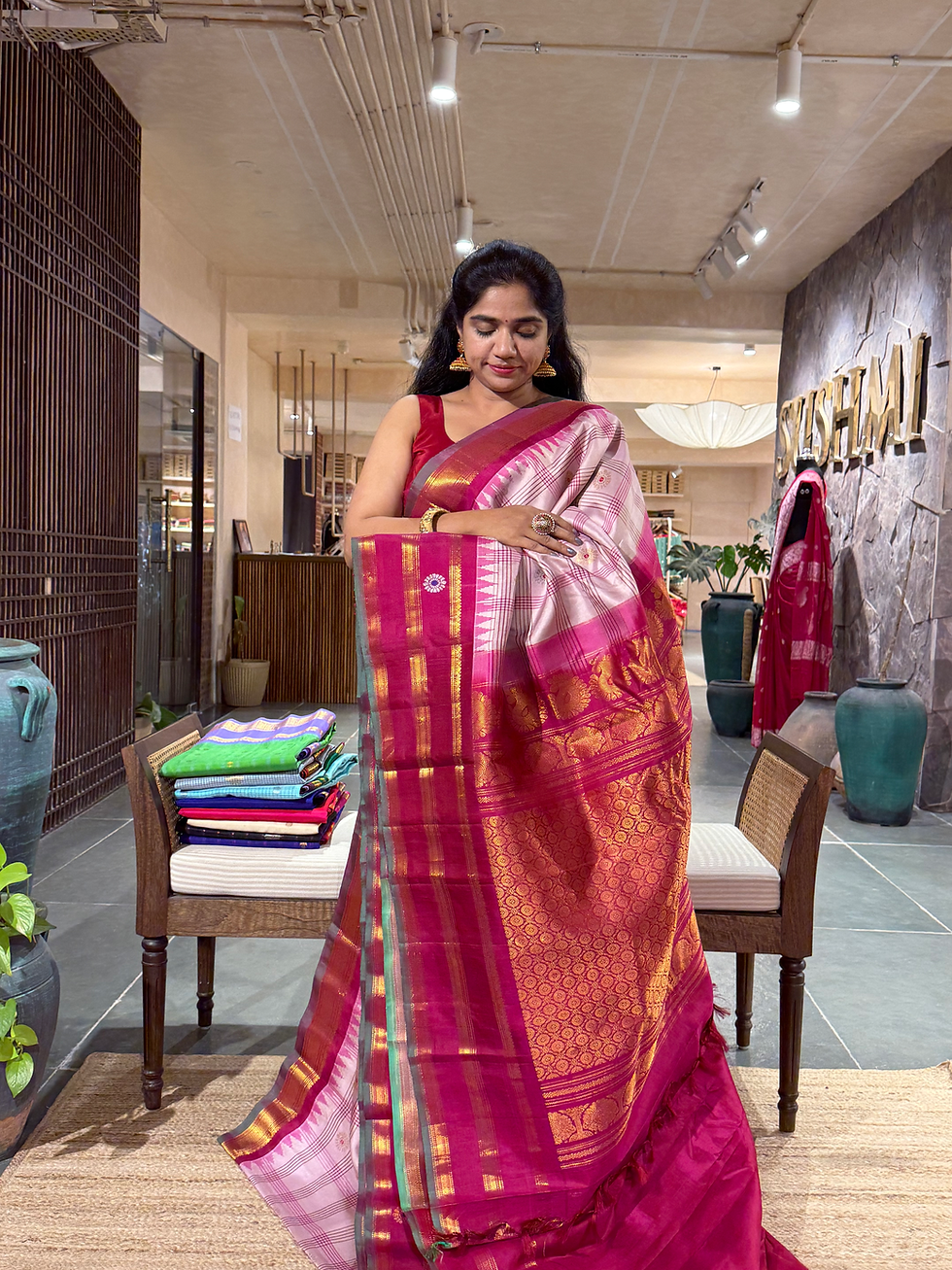 Rani Pink Gadwal Silk Saree in kanchi Look : GADKGM9