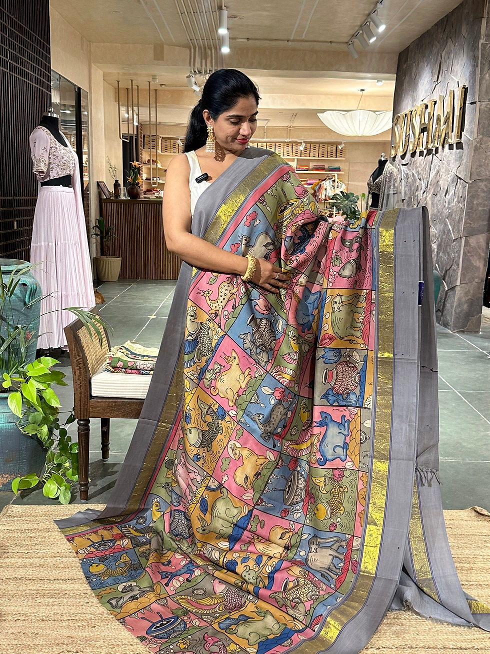 Pen kalamkari Kanchi Gap Border Saree