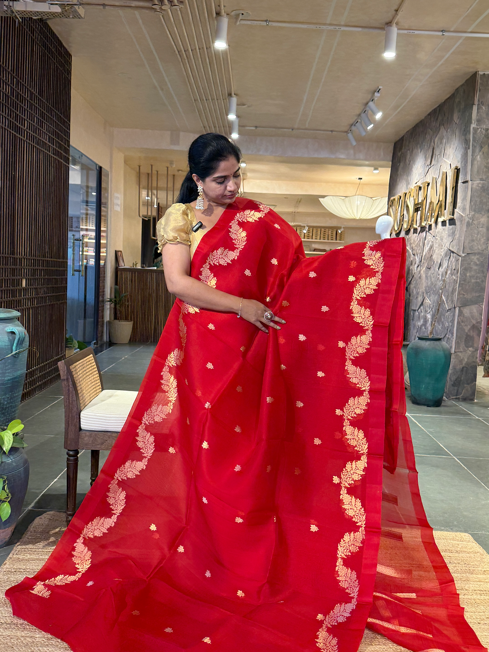 Chilli Red Banarasi Handloom Kora Silk Saree with kaduwa woven open borders