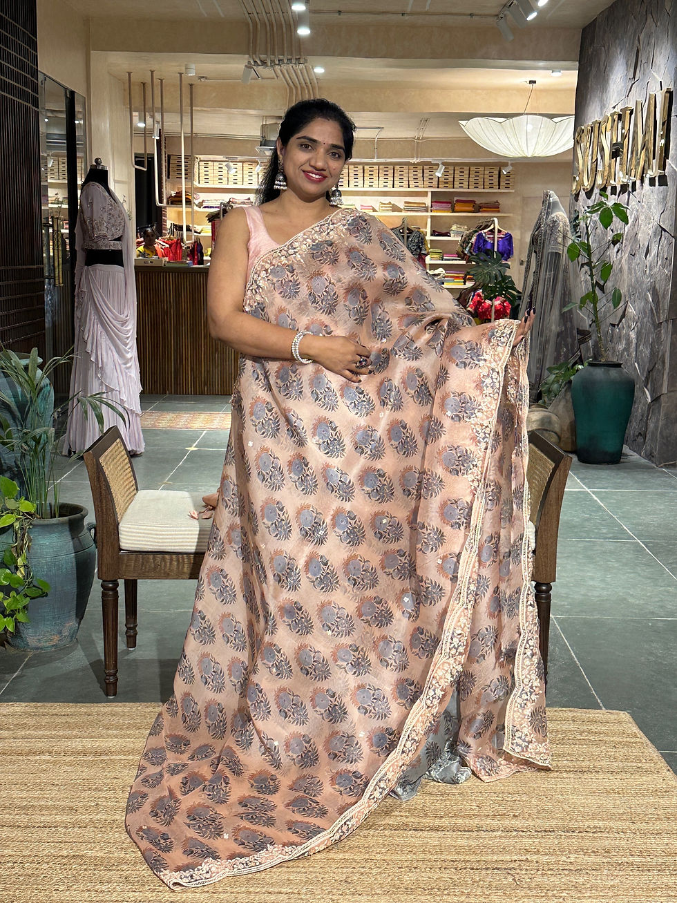 Peach Pure Organza handwork Saree with Sabyasachi floral print