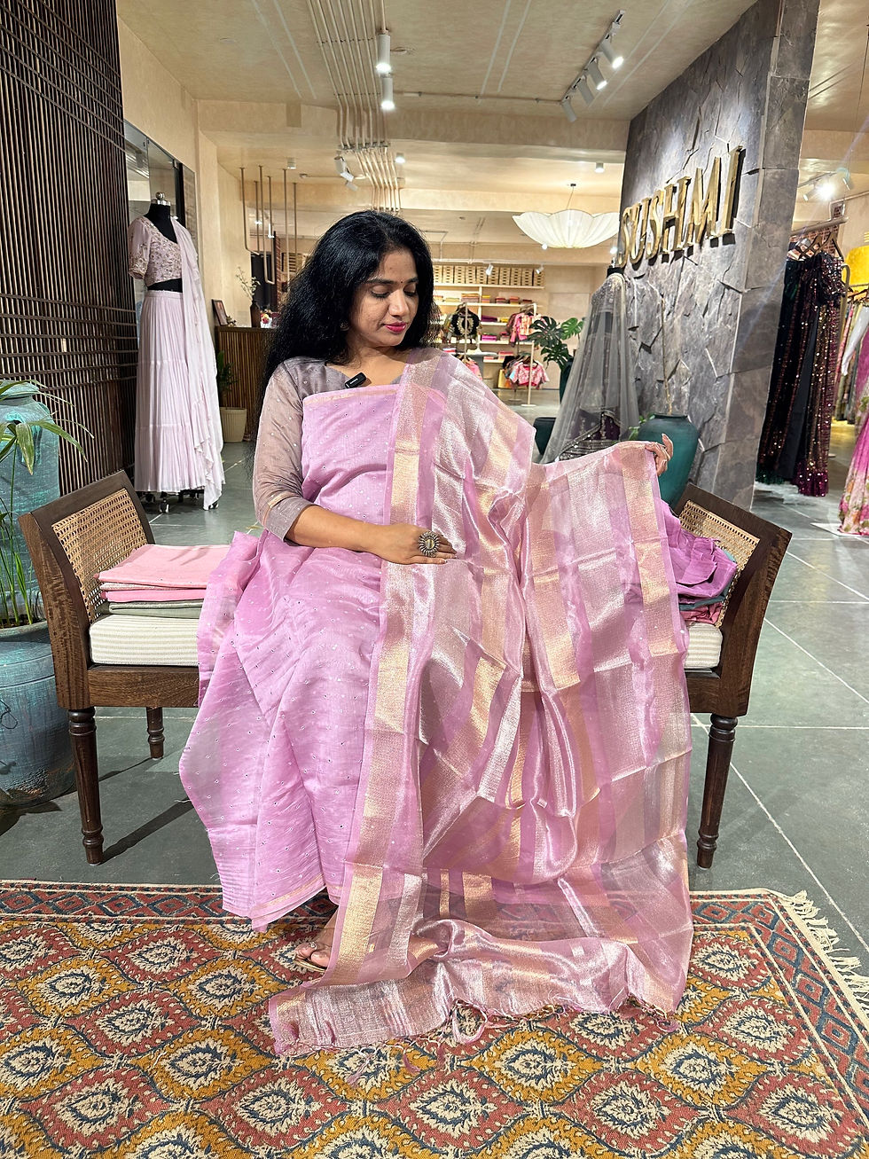 Pastel Pink Pure Handloom Chanderi silk mirrorwork 3-pc suit set