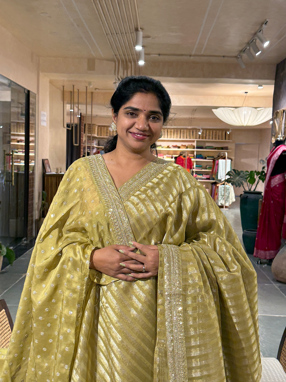 WDTSH : Olive Banarasi Tissue Saree with Gold based Tissue