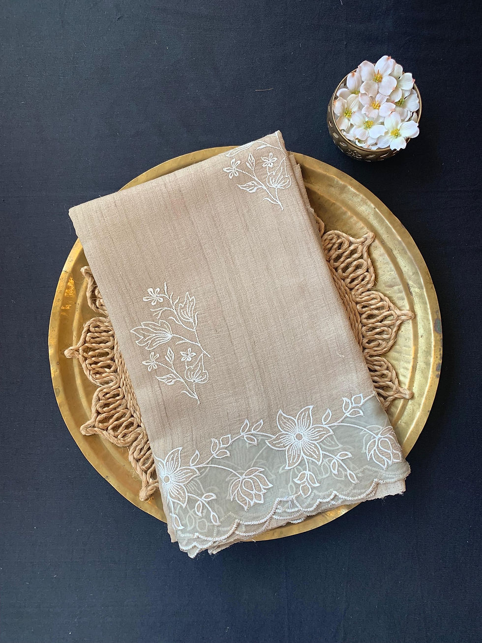 Pure handloom Tussar Designer Saree with Organza Applique Cutwork Border