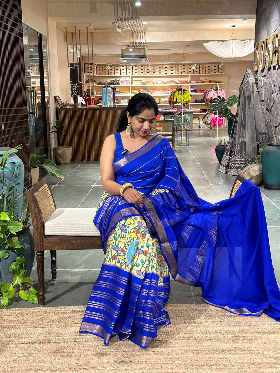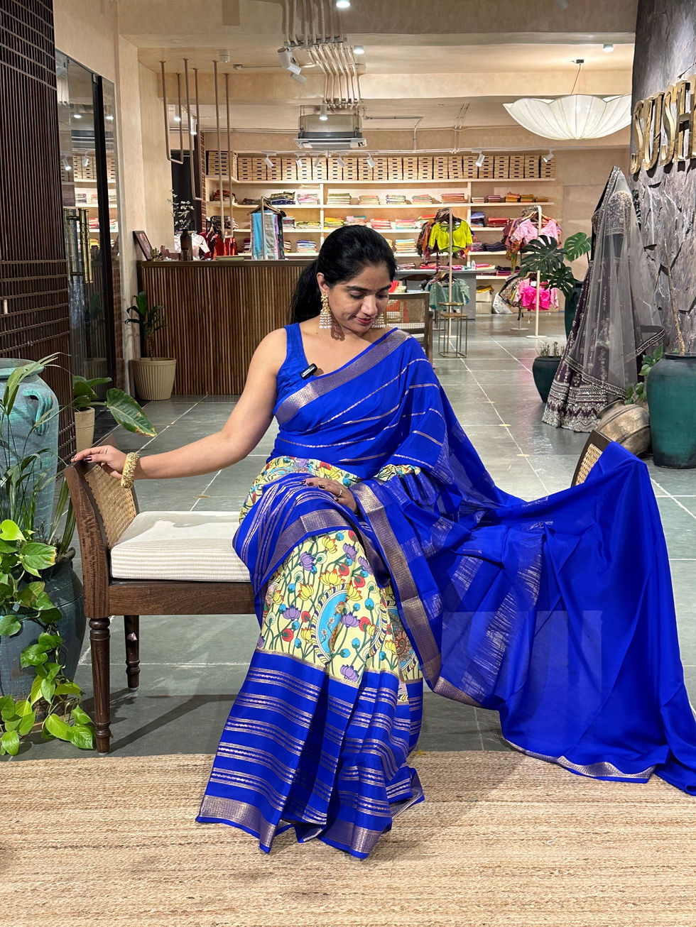 120GSM Pure Handloom Mysore Silk Saree With Kalamkari Print