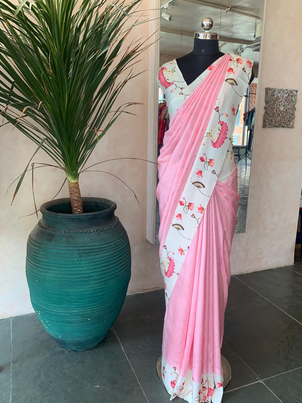 BabyPink Kanchi Soft Silk Saree with Pichwai printed border , pallu & blouse