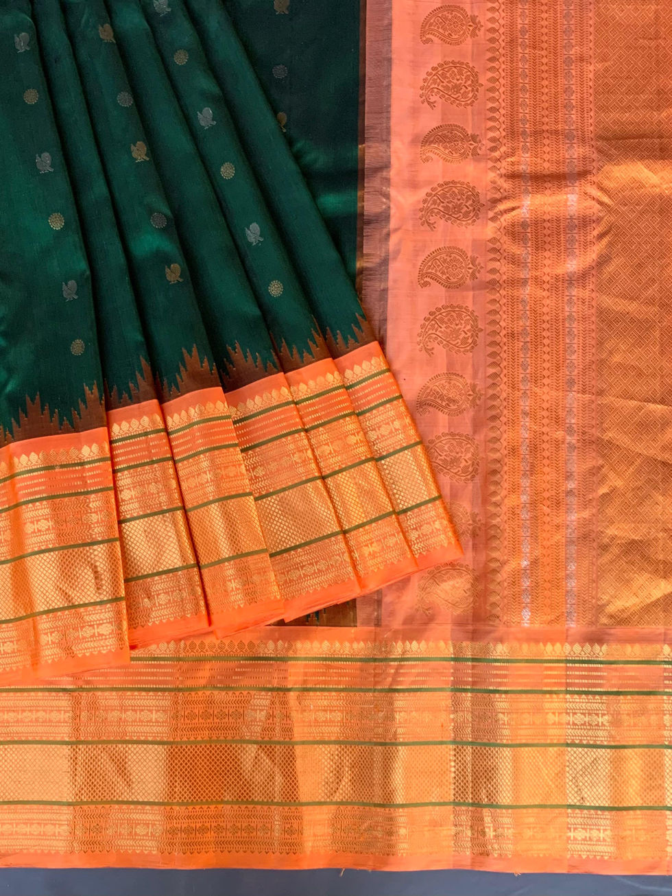 Bottle Green Premium Handloom Gadwal Silk Saree with Kanchi Kuttu Borders