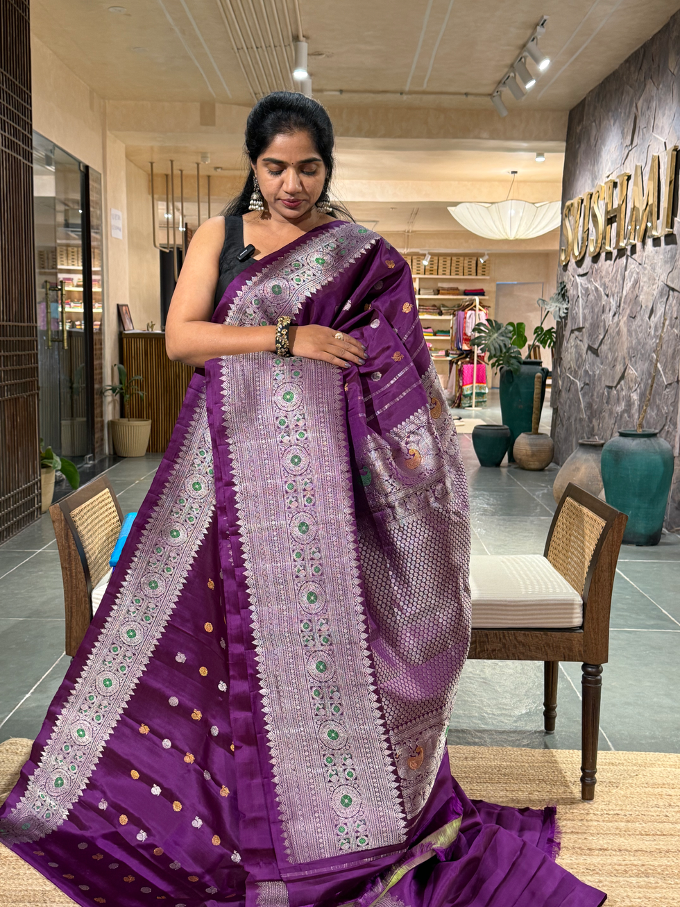 Brinjal Pure Handloom Tussar Silk Saree with Petite Point Border TPPM13