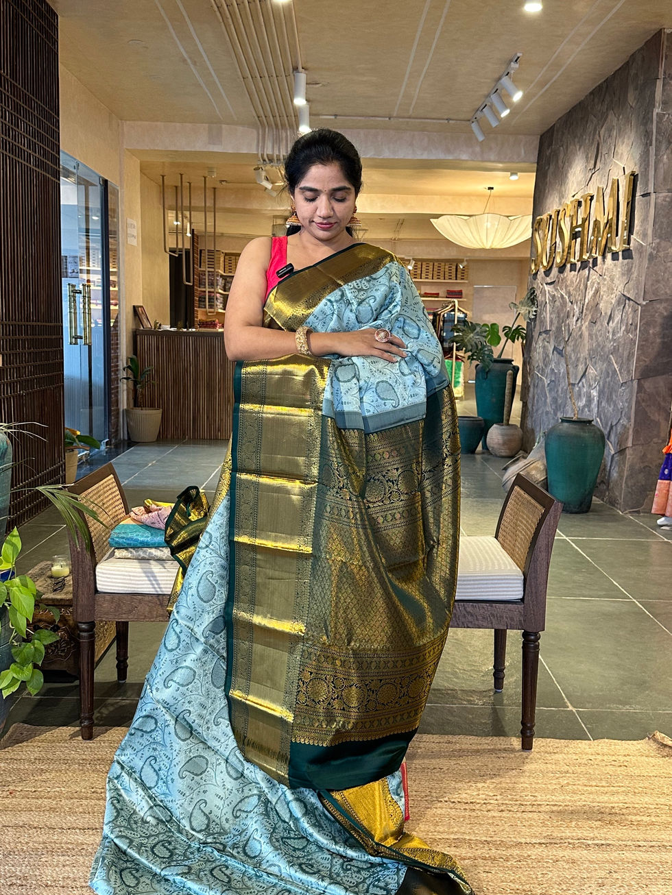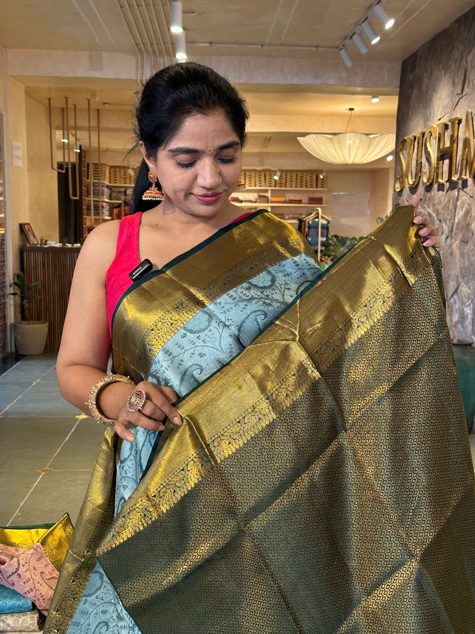 Powder Blue Premium Kora Banarasi Silk Saree with kaduwa weaving : KBSM13