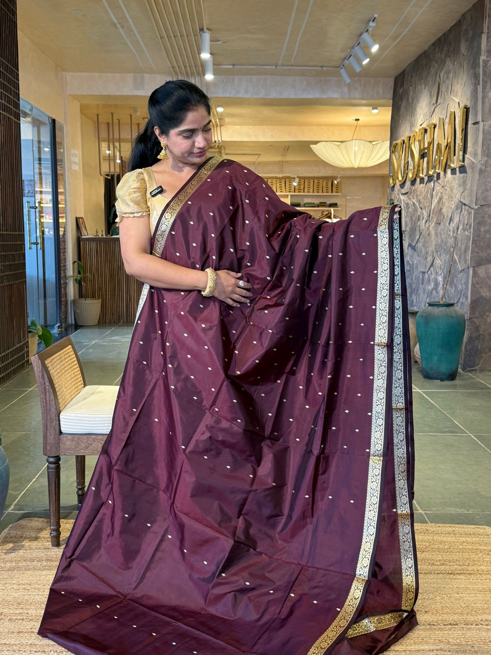 Coffee Brown Banarasi Handloom Katan Silk Saree With Resham Weaving