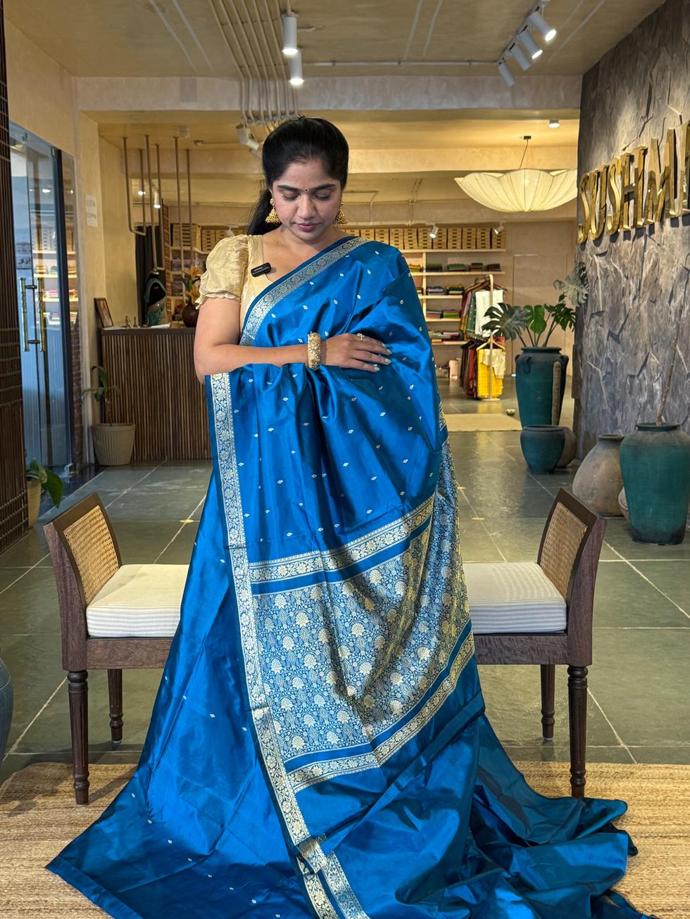 Peacock Blue Banarasi Handloom Katan Silk Saree With Resham Weaving