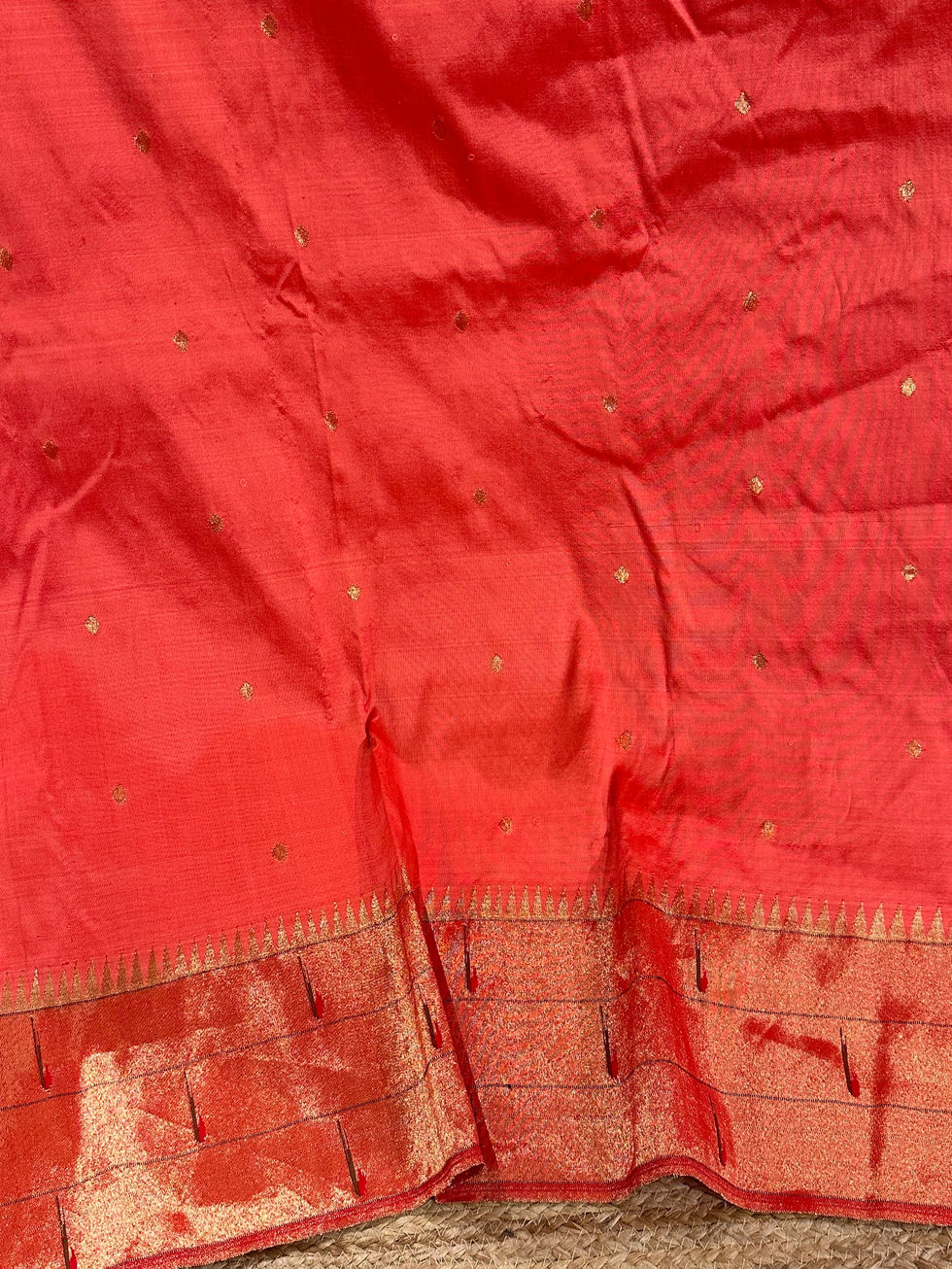 Red Pure Handloom Tussar Silk Saree with Petite Point Embroidered Border TPPM13