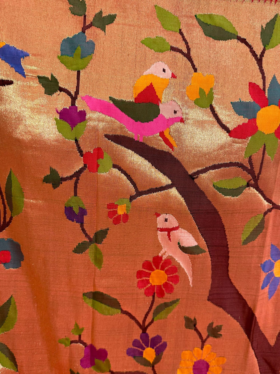 Pure Handloom Tussar Silk Saree with Petite Point Embroidered Border TPPM13