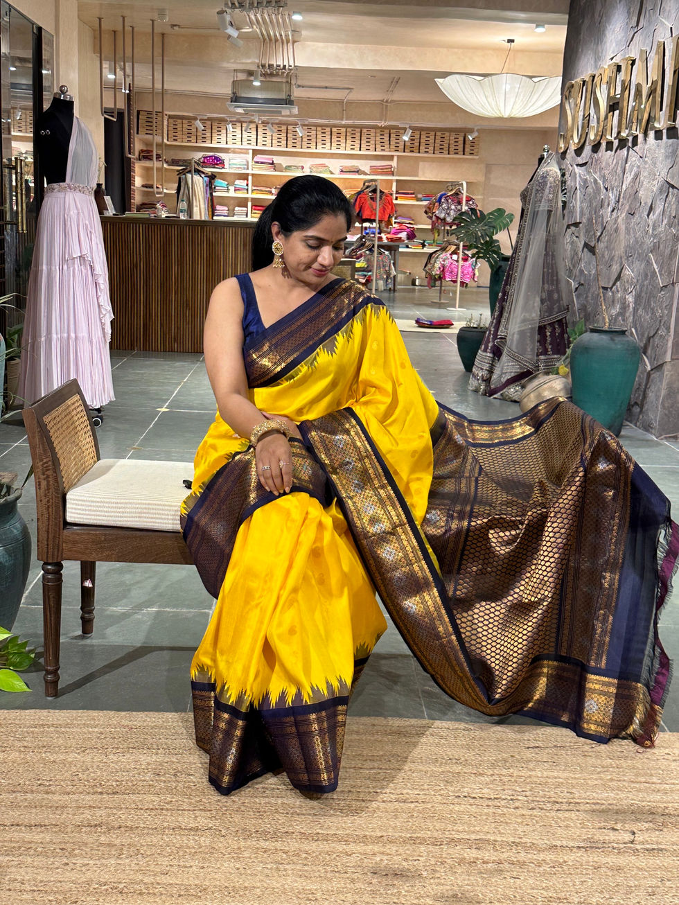 Mustard Pure Handloom Tussar Silk Saree with Petite Point Border TPPM13
