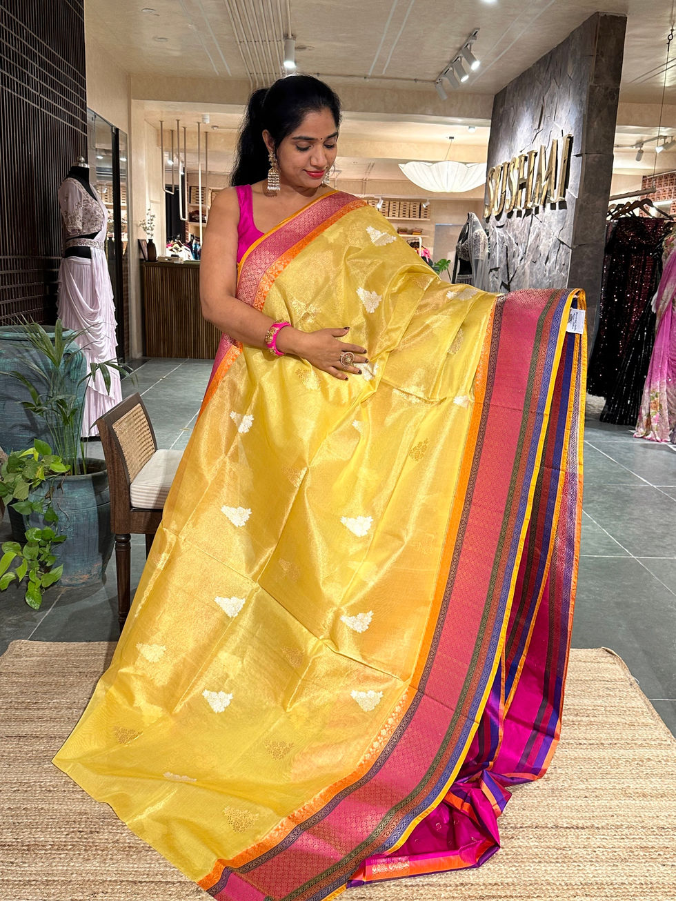 Golden Yellow Ektara Banrasi kora Silk Tissue Saree