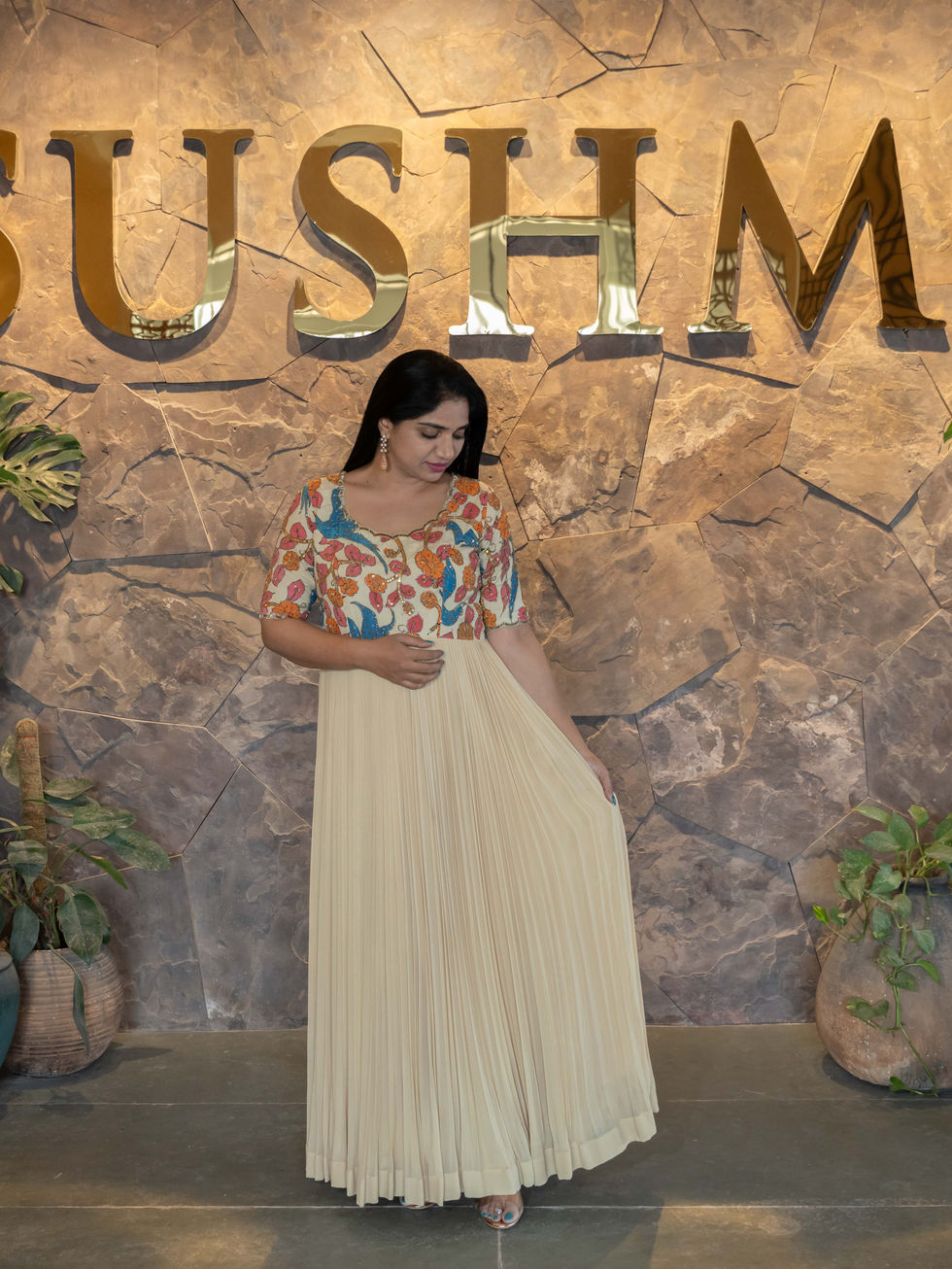 Ivory Pure Silk Soft Drape Saree with floral Print