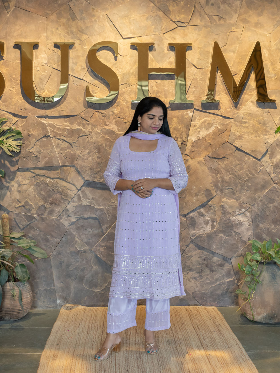 Gorgette Mirrorwork Chikankari 3-PC set