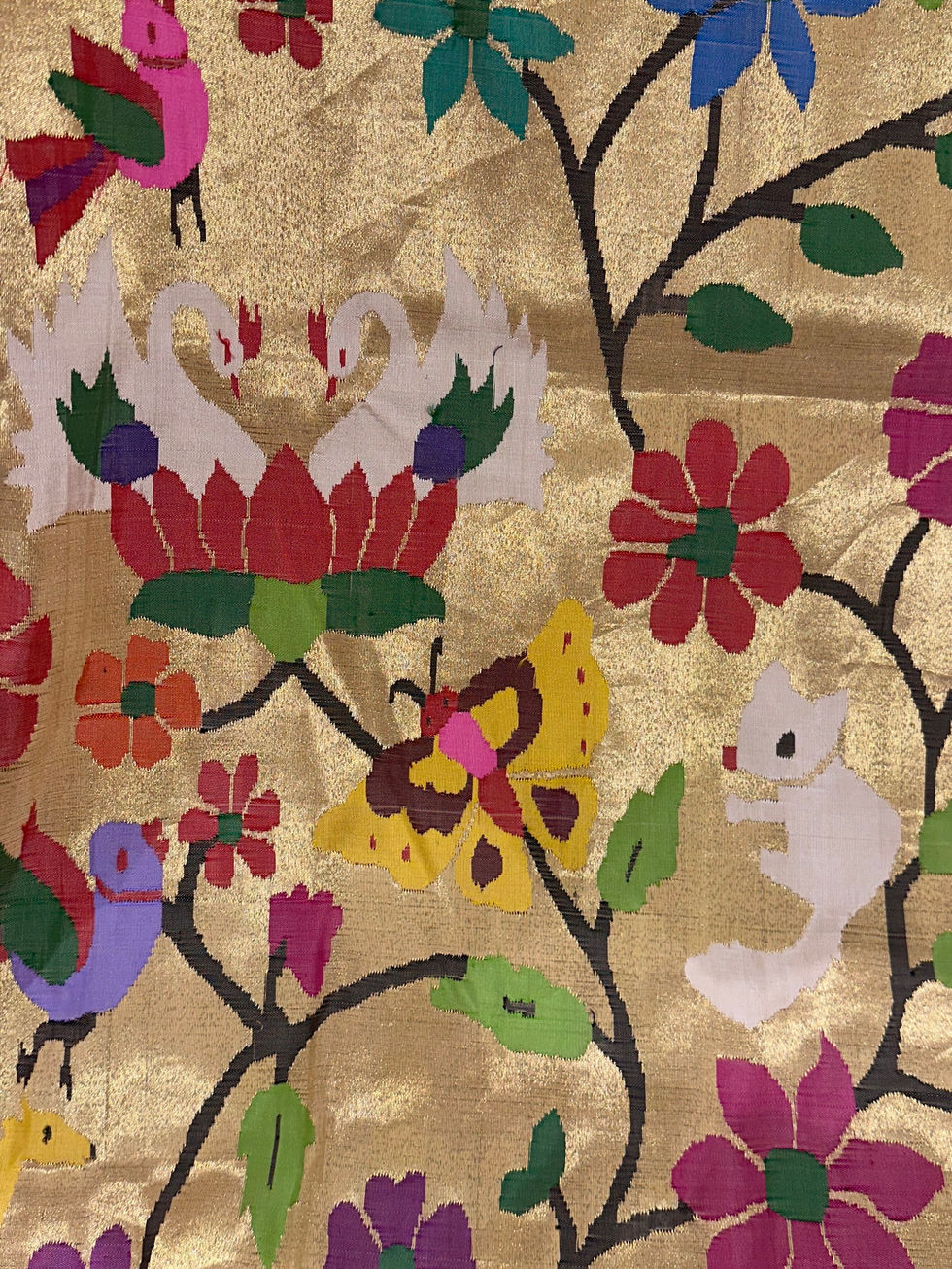 Pure Handloom Tussar Silk Saree with Petite Point Embroidered Border TPPM13