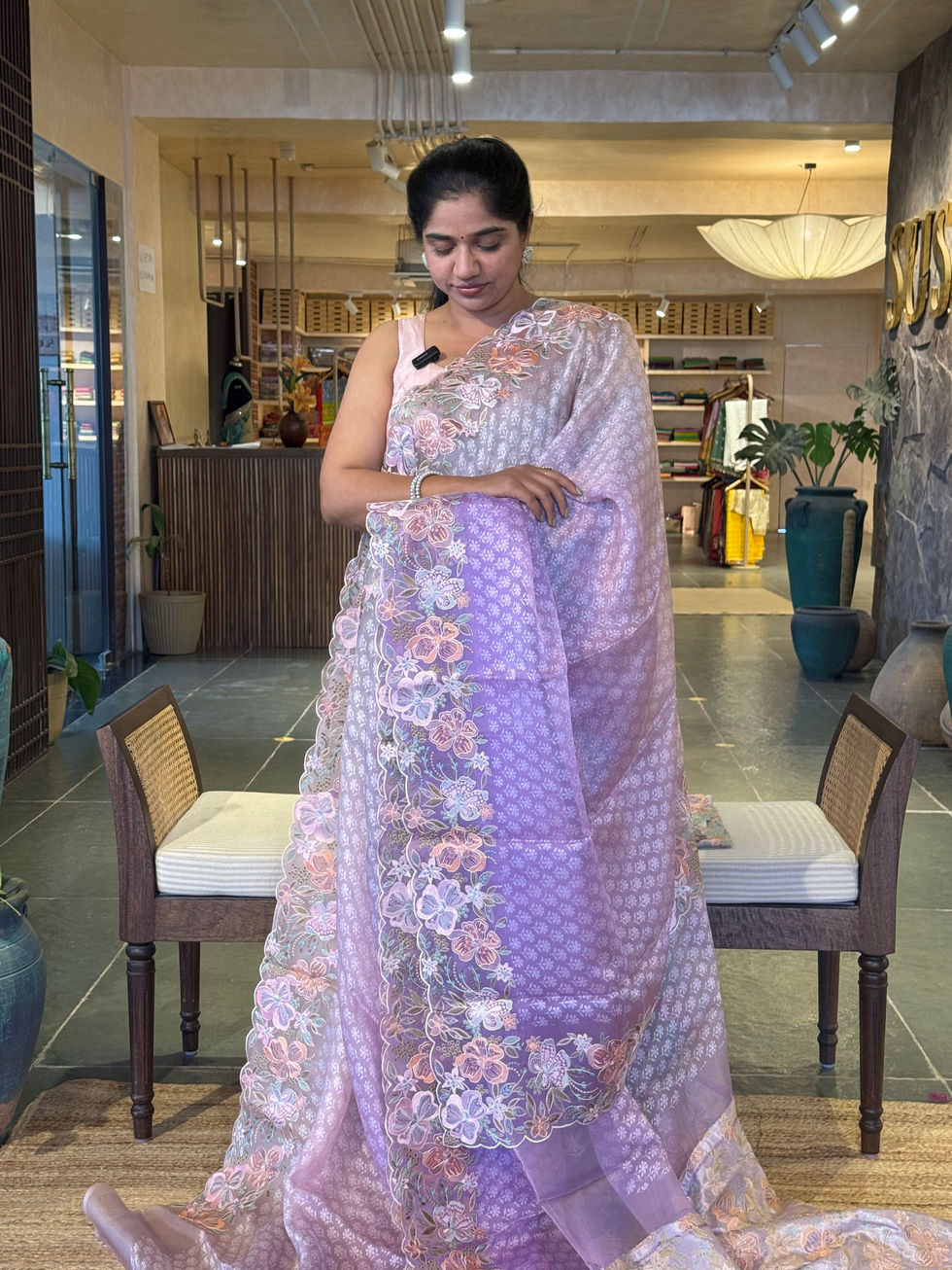 Lilac Pure Organza Brasso Saree with Stunning Embroidered Border and Blouse