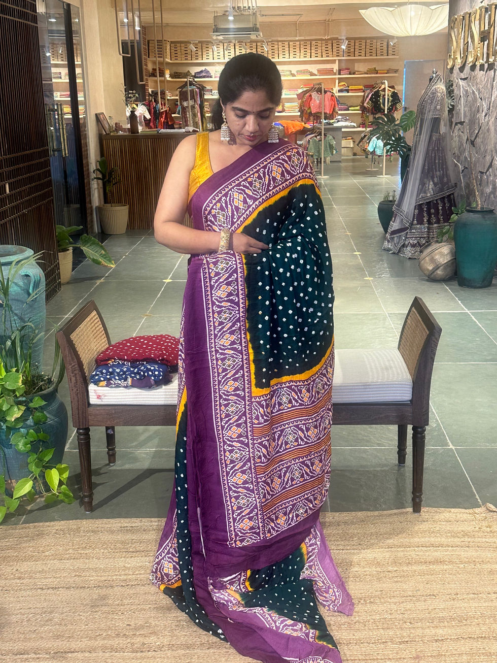 Brinjal Pure Handloom Tussar Silk Saree with Petite Point Border TPPM13