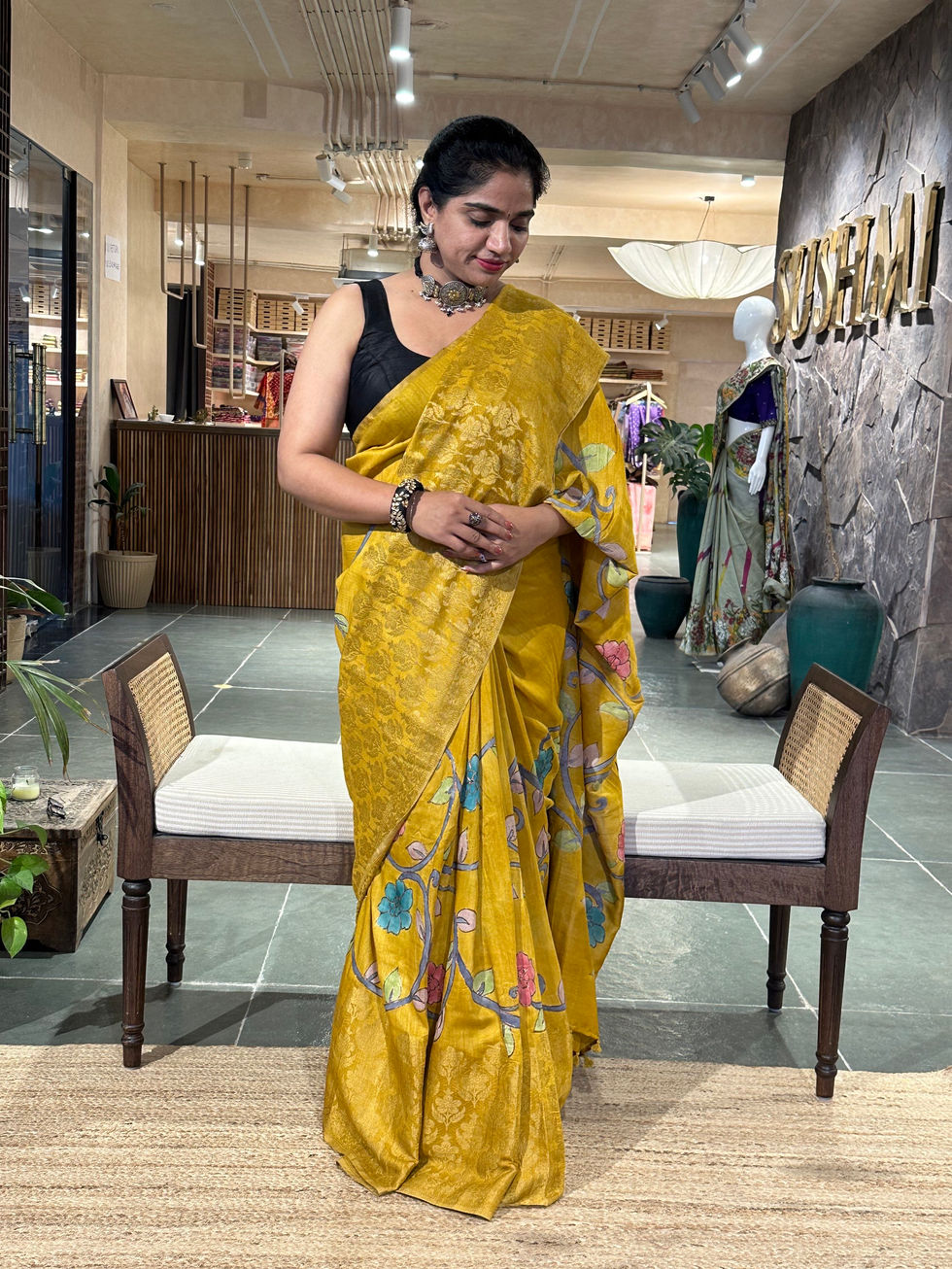 Mustard Pure Handloom Tussar Silk Saree with Petite Point Border TPPM13