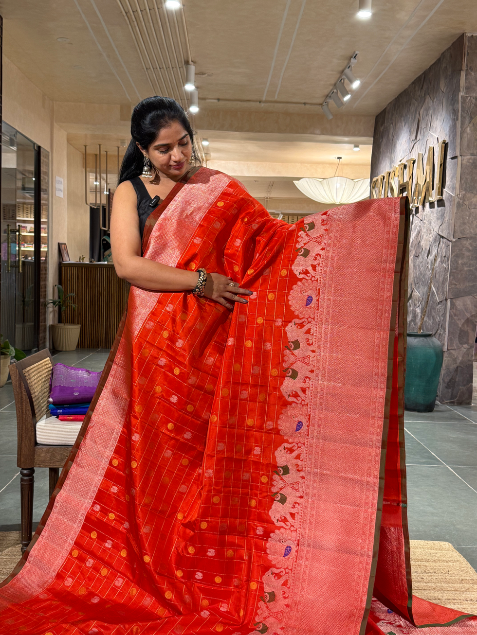 Orange Premium Gadwal Silk Saree with Turning Borders
