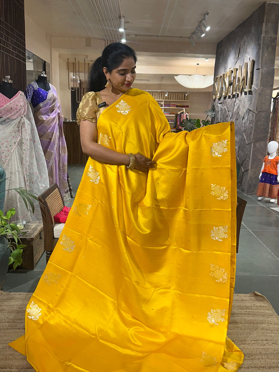 Orangish Red Pure Banarasi Handloom Mashru Silk Saree with kaduwa weaving