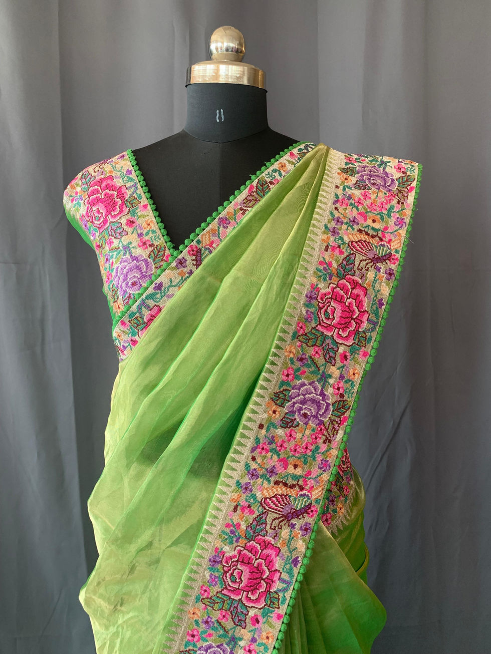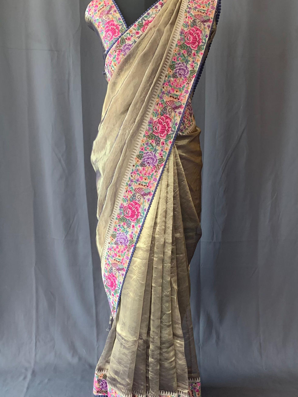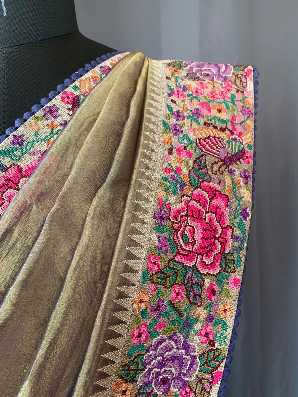 Pure Handloom Tussar Silk Saree with Petite Point Embroidered Border TPPM13