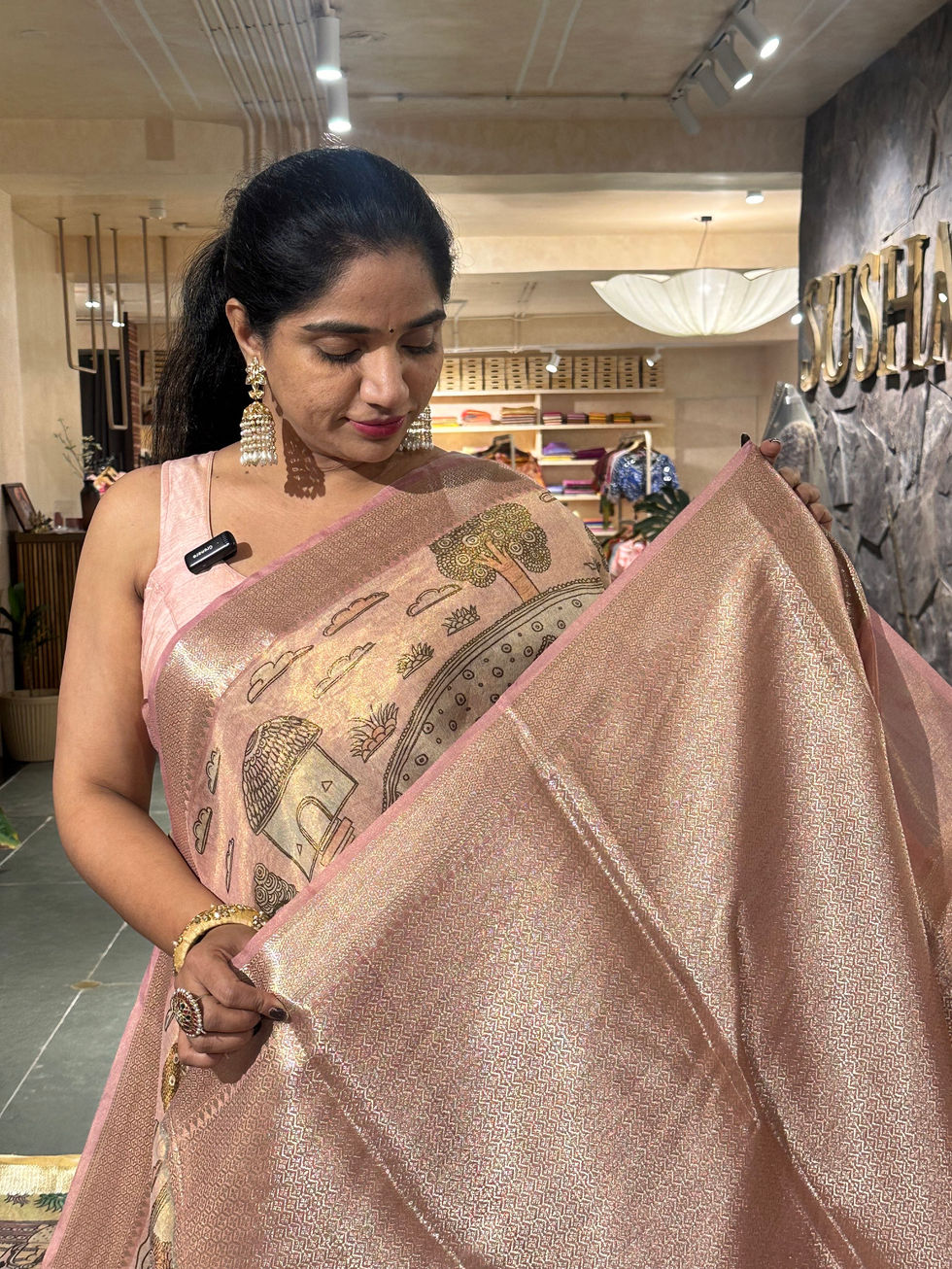 Pastel Pink Banarasi Cotton Tissue Saree with Ramayana story Theme print
