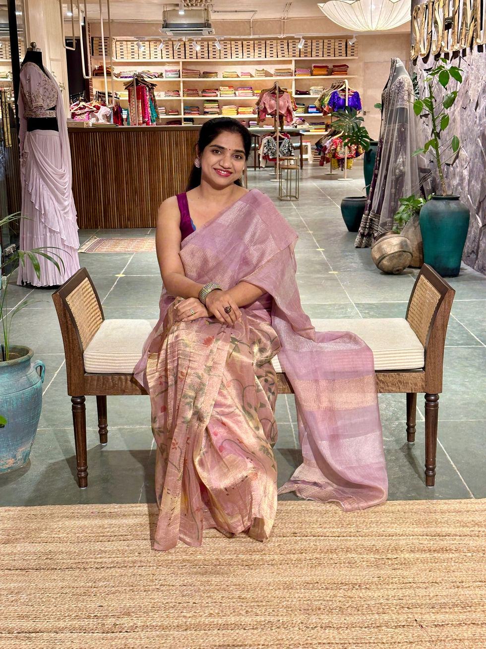 Pink Half and Half Style Banarasi Tissue Printed Saree