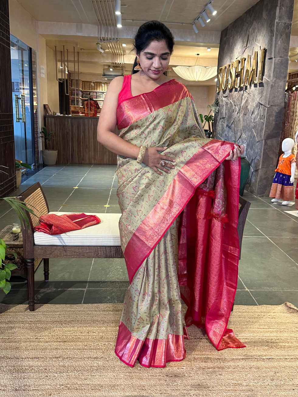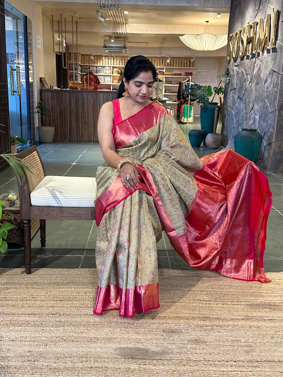 Rani Pink Banarasi brocade kora Tissue Saree