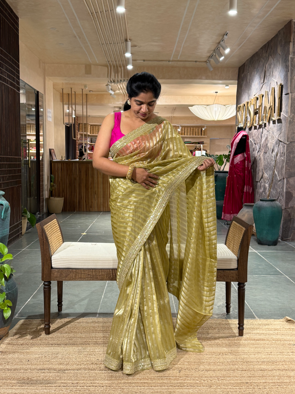 Rani Pink Banarasi brocade kora Tissue Saree