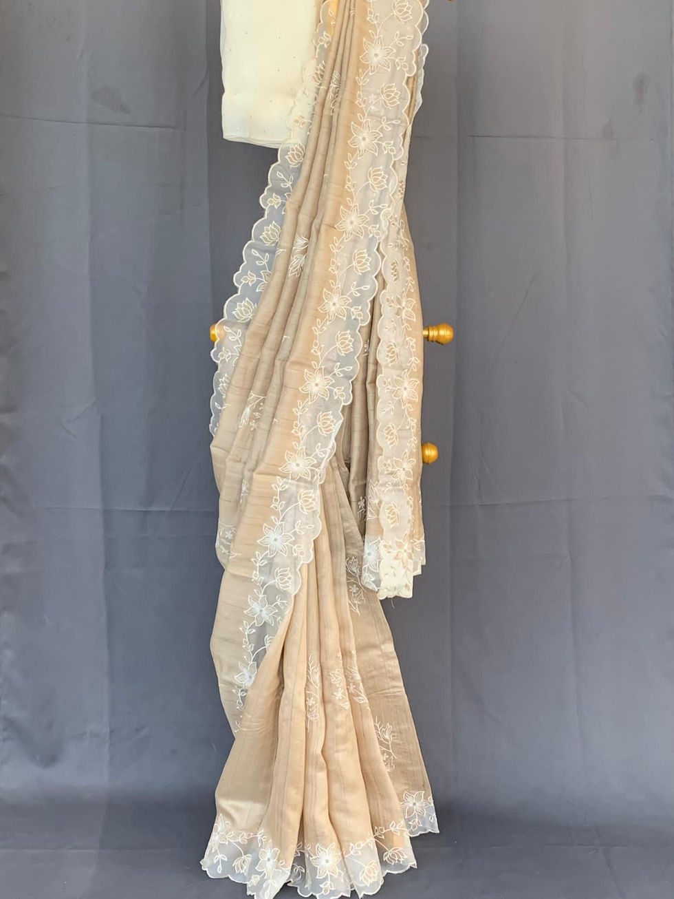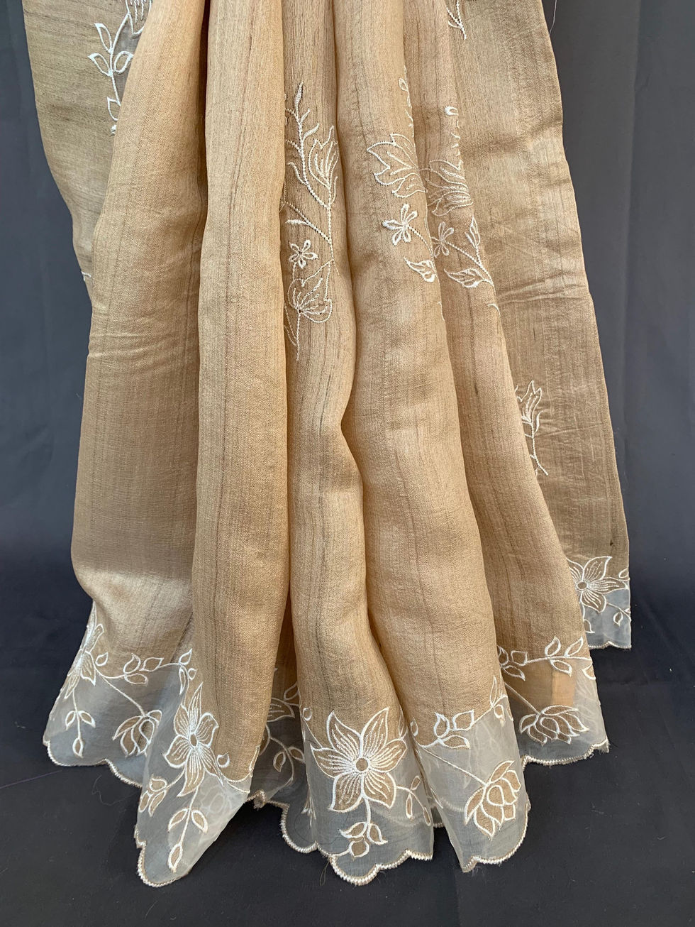 Pure handloom Tussar Designer Saree with Organza Applique Cutwork Border
