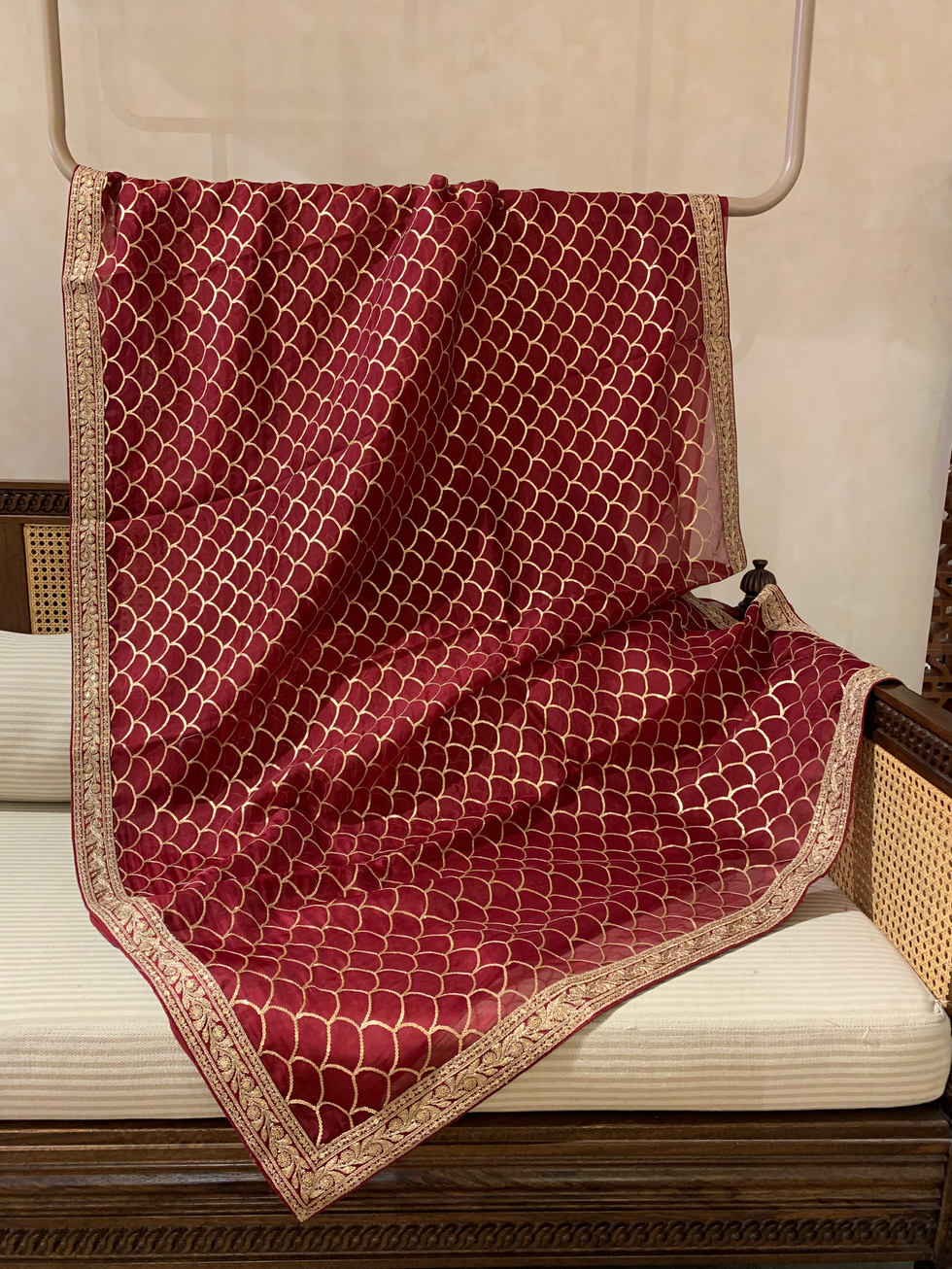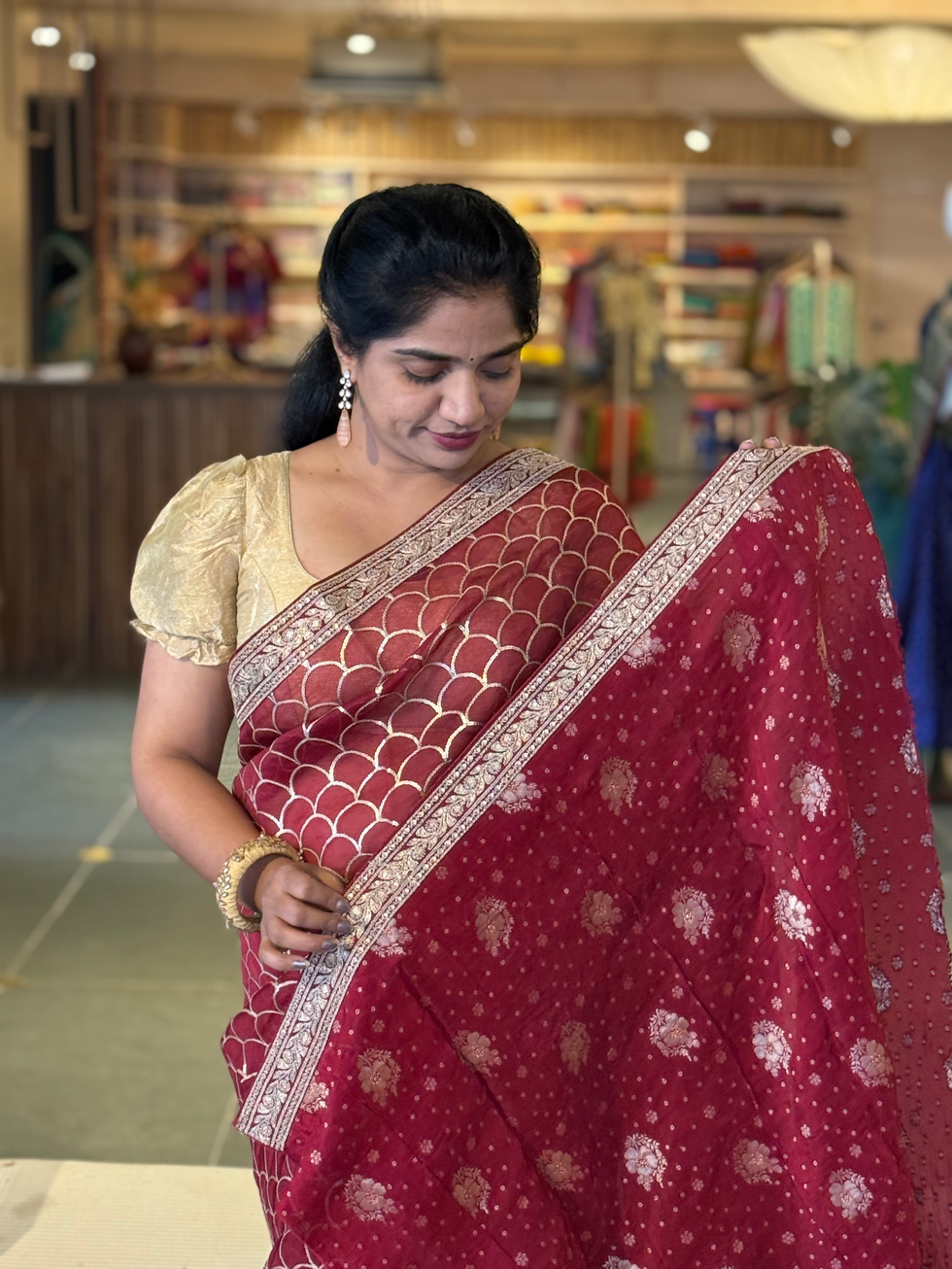 Burgundy Color Pure Organza allover Sequnce Saree in Sabhyasachi Style
