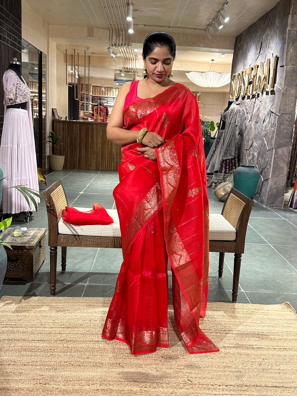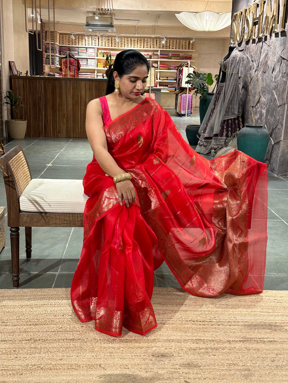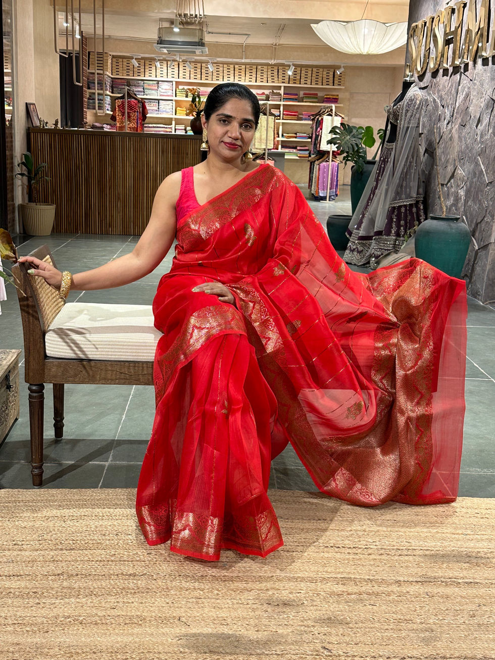 Rani Pink Banarasi brocade kora Tissue Saree