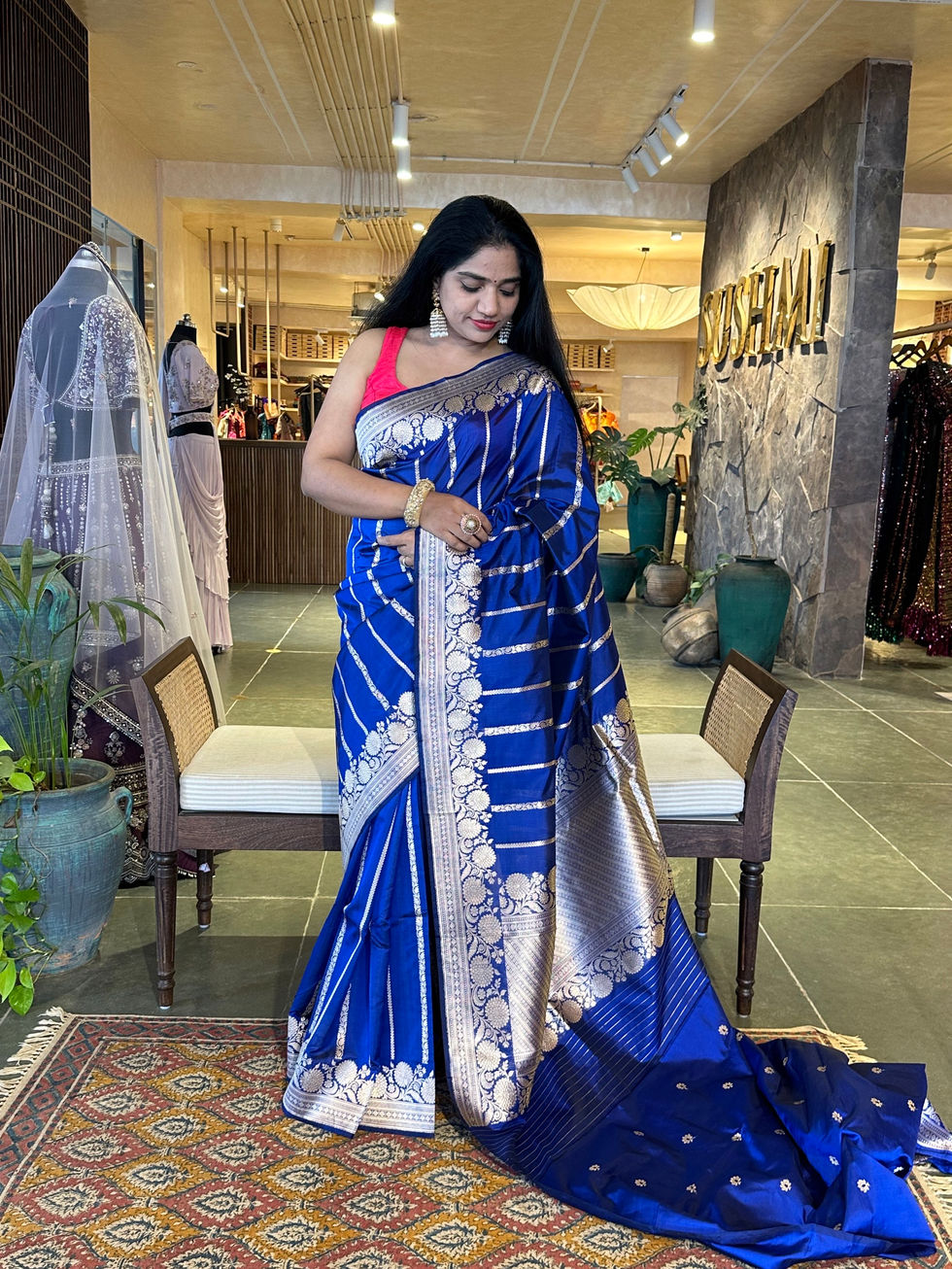 Royal Blue Pure Banarasi Katan by Katan Silk Saree