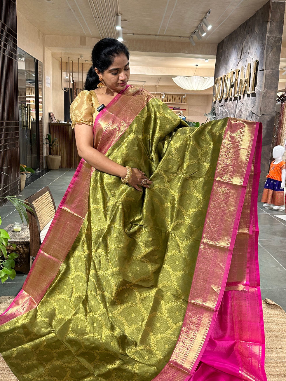 Rani Pink Banarasi brocade kora Tissue Saree