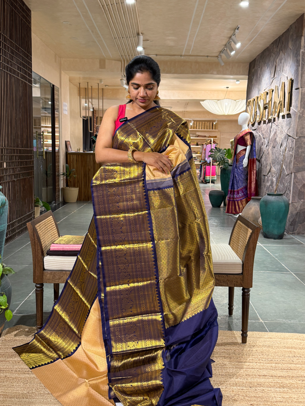 Royal Blue Premium Kora Banarasi Silk Saree with kaduwa weaving : KBSM13