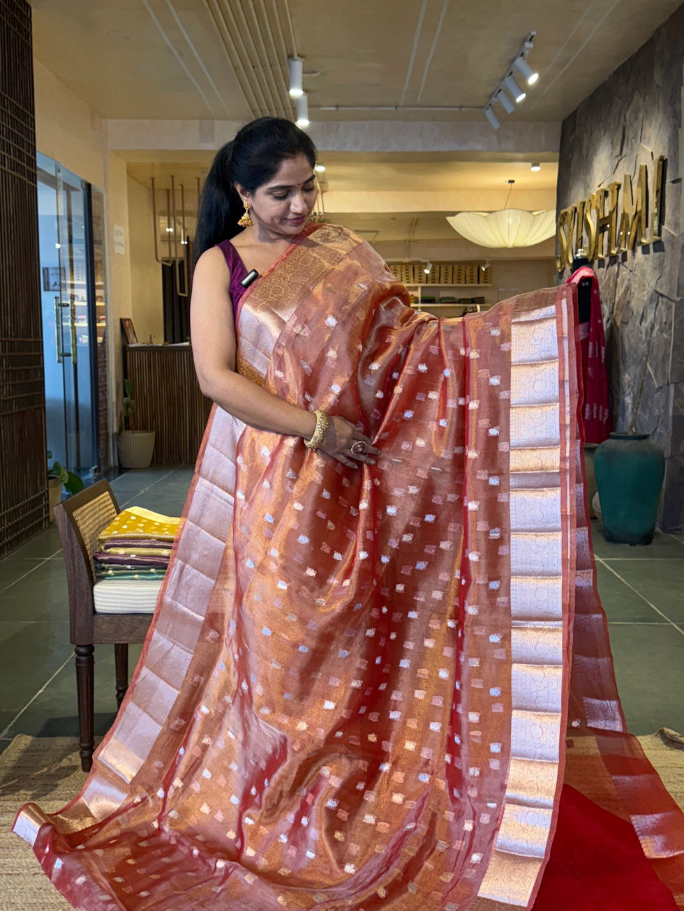 WDTSH : Red Banarasi Tissue Saree with Gold based Tissue