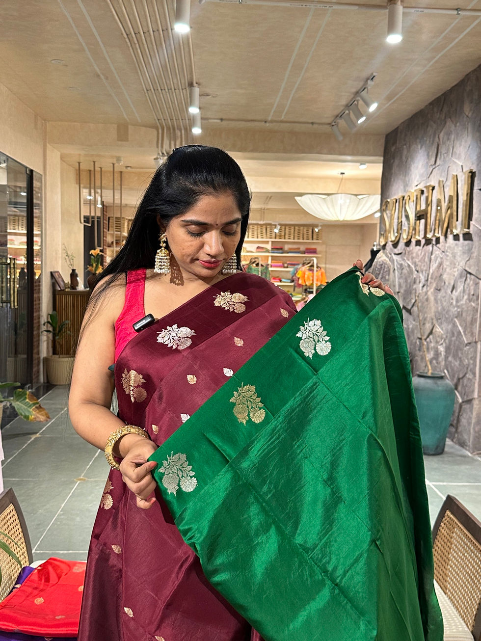 Winish Brown Banarasi Handloom Raw Mango Silk Saree with Open Border concept